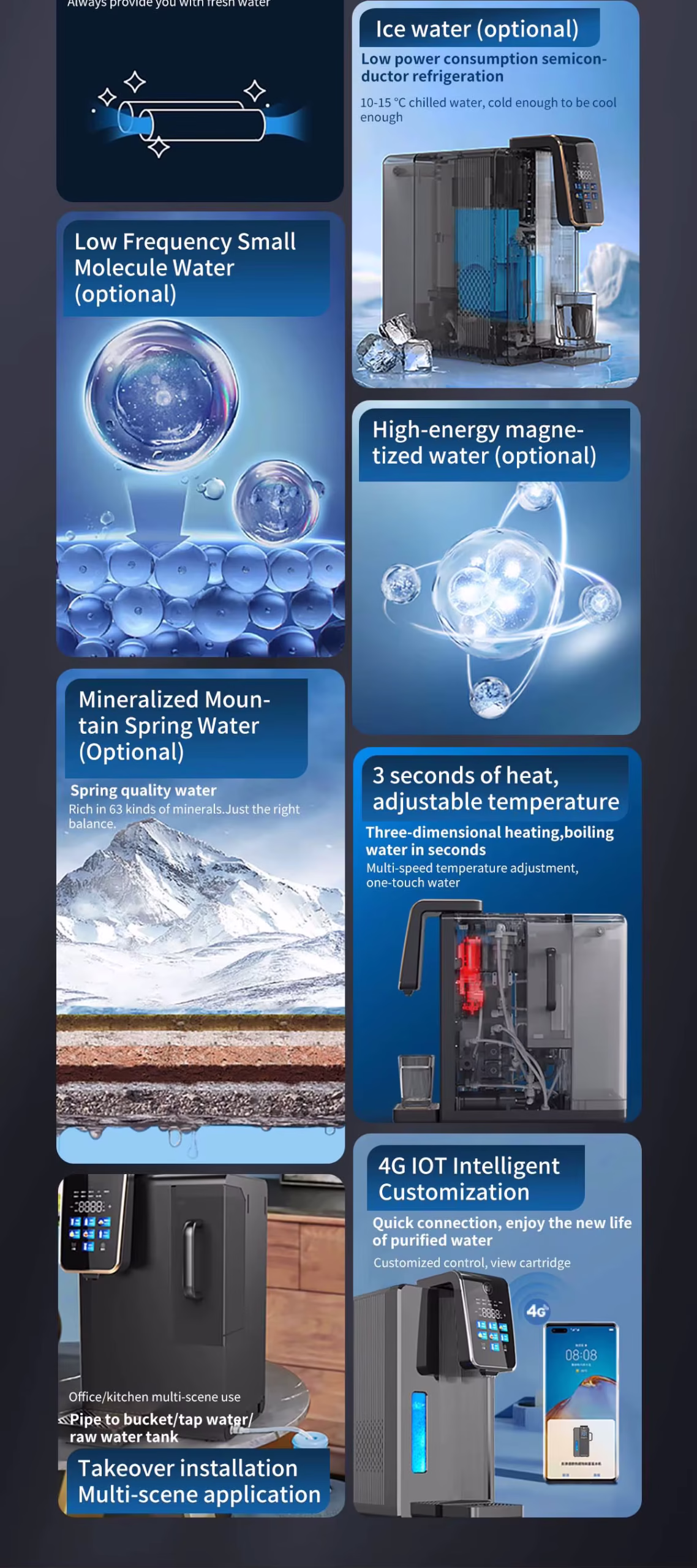 Få kristallklart, välsmakande och hälsosamt vatten utan krångel. Med avancerad teknik för omvänd osmos och inbyggd vätegenerator förbättrar du vattenkvaliteten var du än är – hemma, på kontoret eller i sommarstugan. Det här är nästa generations vattenrening, utvecklad för dig som vill ha funktion och hälsa i ett.
