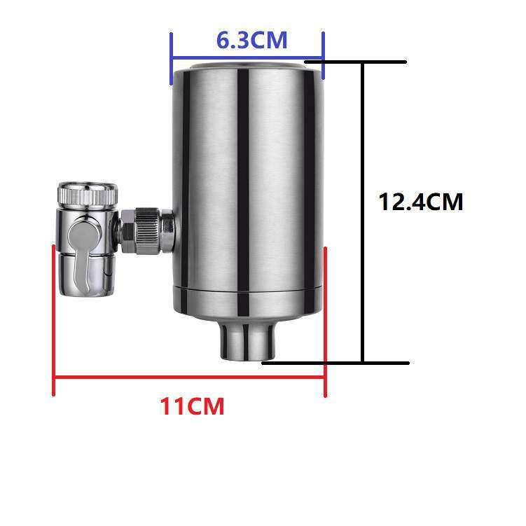 Detta kompakta och hållbara vattenfilter i rostfritt stål monteras direkt på din vattenkran och förbättrar vattenkvaliteten vid varje användning. Perfekt för kök eller badrum, och utmärkt vid matlagning, dryck eller tvätt.